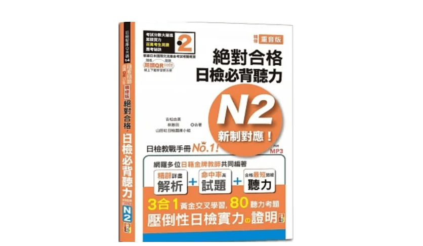 聽力的書籍,我是用《絕對合格全攻略!新制日檢N2必背必出聽力》這本。跟閱讀一樣,我每天會做個幾篇,讓自己熟悉日檢題目的速度。