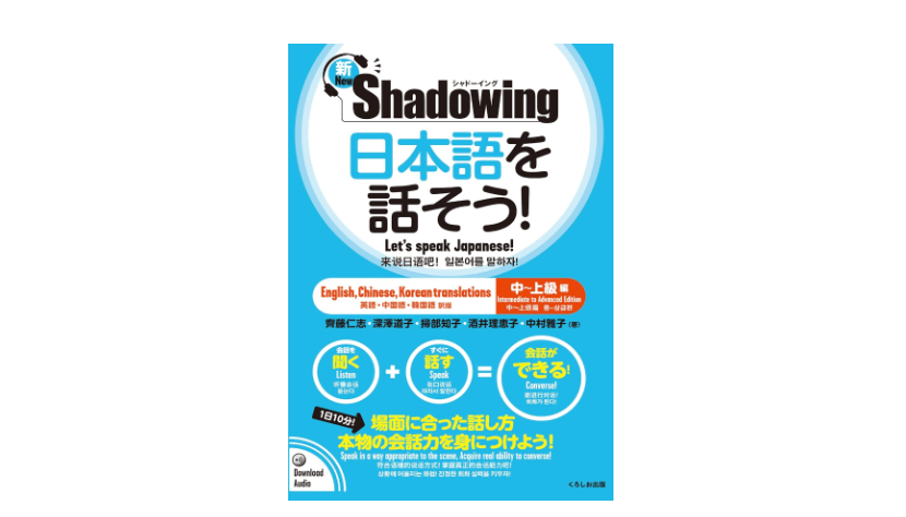 我使用的書是《新・シャドーイング 日本語を話そう! 》,它有分上下兩本,我是從上篇初級開始慢慢練習的。所謂影子跟讀法就是要像影子一樣黏在撥出的音檔,並且是要在完全不看稿的狀態下進行,難度真的很高。